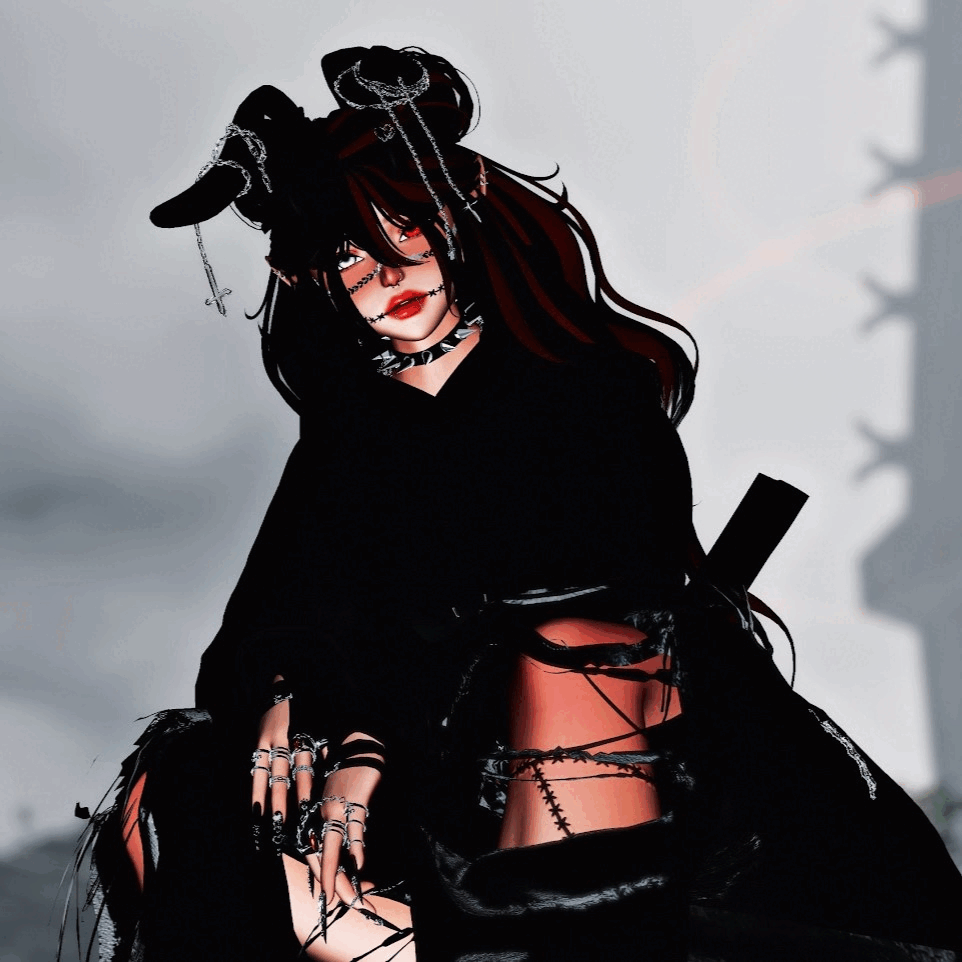 Toggles: Arm Chains, Belt, Bunnies, Choker, Collar, Cuffs, Elf Ears, Face Chain, Fishnet Bodysuit, Gloves, Halo, Harness, Hat, Horns, Knife Holster, Mask, Necklaces, Rings, Straps, Thighg Highs, Waist Flannel, Side Swept Bangs, Straight Bangs, 3 Way swoop Bangs, Skirt, Ripped Jeans, Sweats, Double Bun Hair, Messy Hair, double Pigghies Hair, Long Braid Hair, Heels, Hightops, Tatts, Bunny Ears/Tail, Cat Ears/Tails, Top, Puffer Jacket, Hoodie, Shirt,